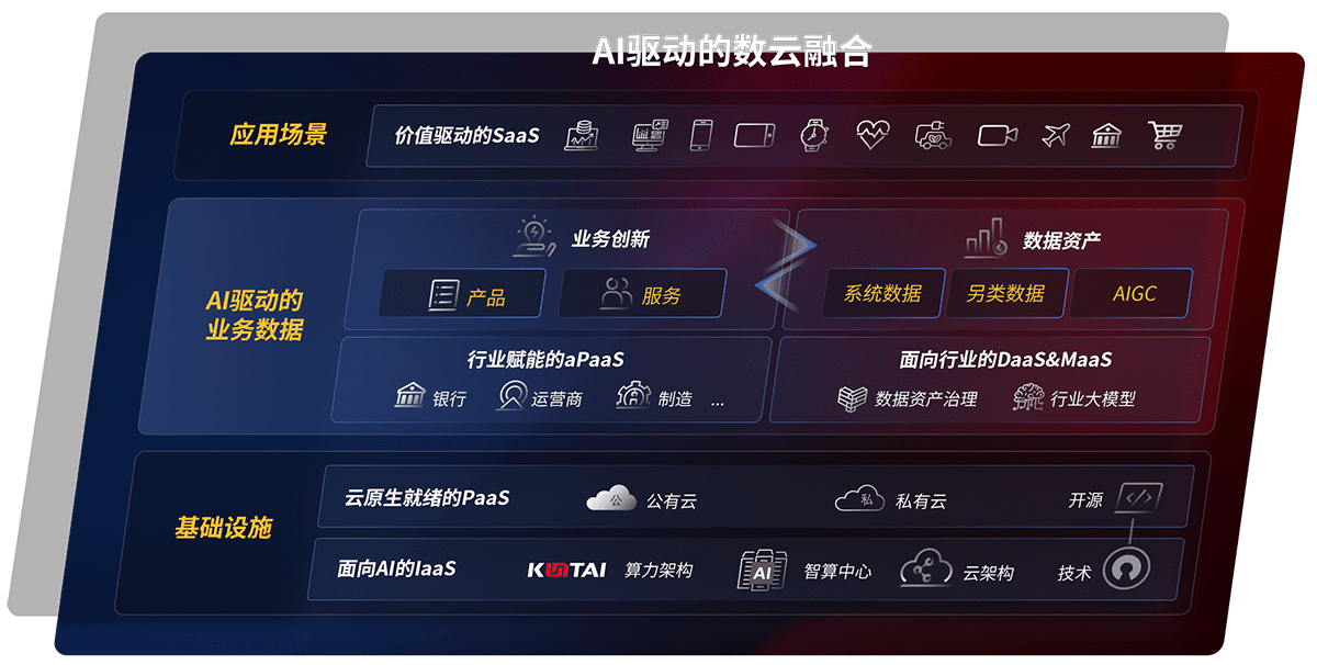 以君临国际鲲泰全国产化计算产品帮助金融行业客户构筑数字底座;以丰富的AI和数云产品及方案,,保障数据安全,,挖掘数据价值,,,,提升服务品质
